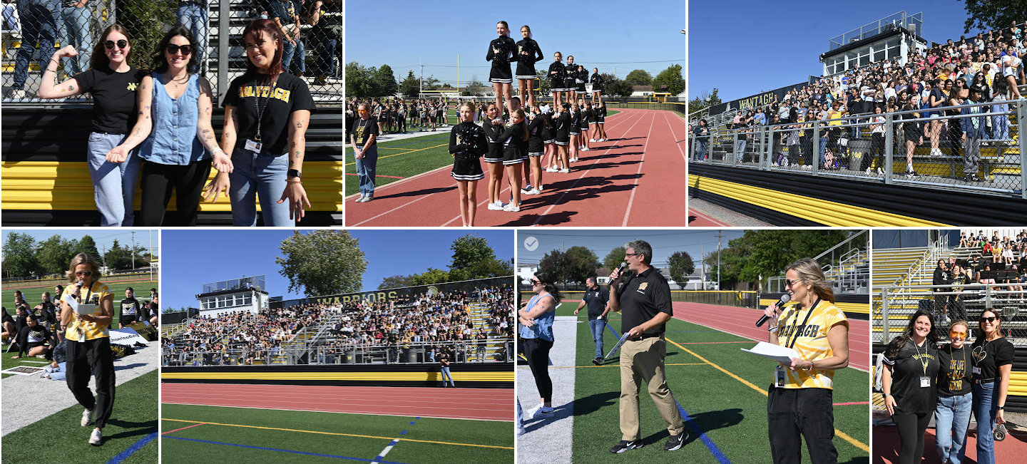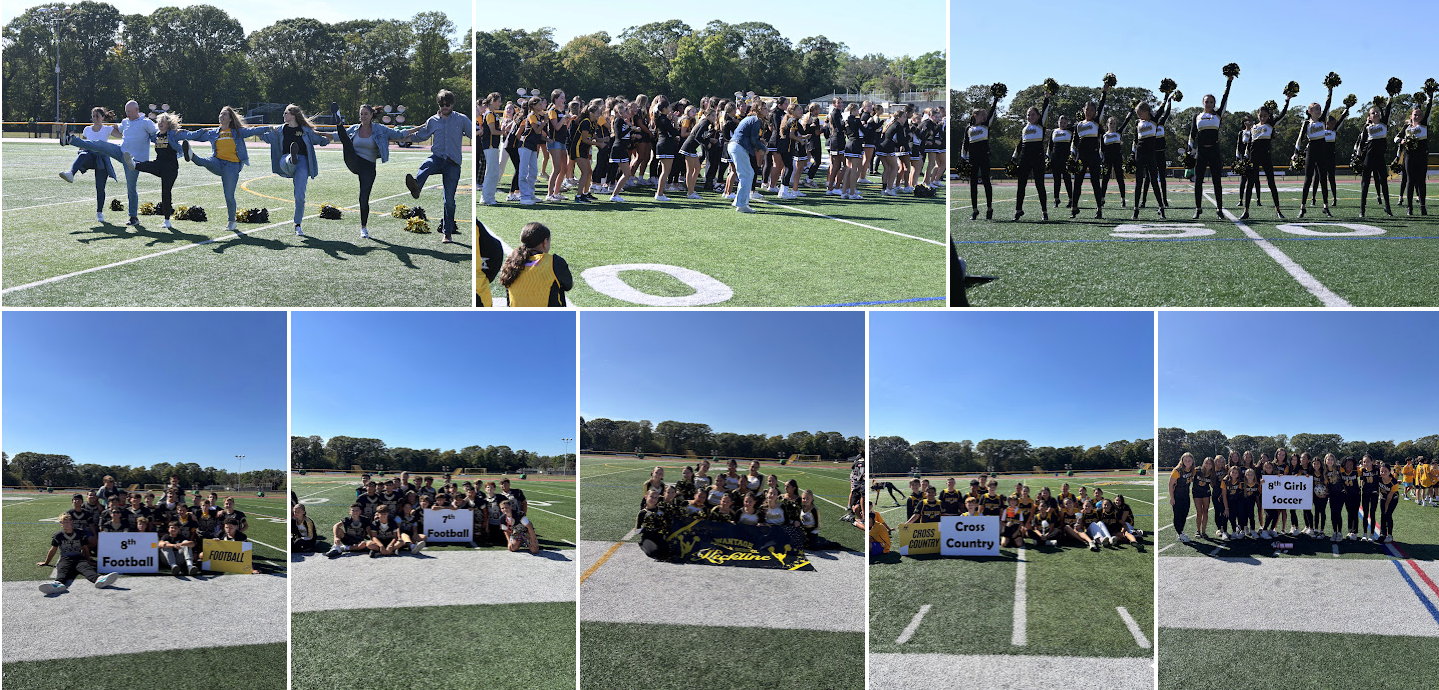 Wantagh Middle School’s annual fall pep rally brought the campus spirit to life as students, athletes, and faculty filled the football field and bleachers in a celebration of school pride. The event highlighted the fall sports teams including football, soccer, cheerleading, cross-country, and kick line. Event MC’s Mr. Cippoletti and Ms. Hult introduced each student who ran, flipped, or rolled into centerfield before performing a fun team 20-second skit.
